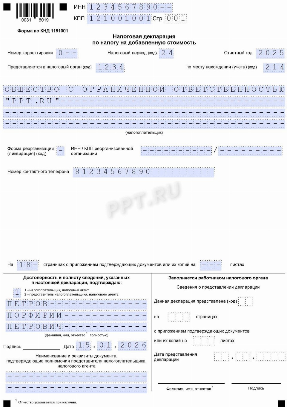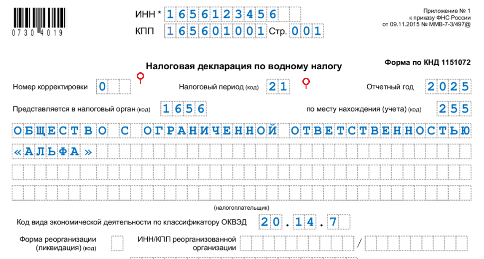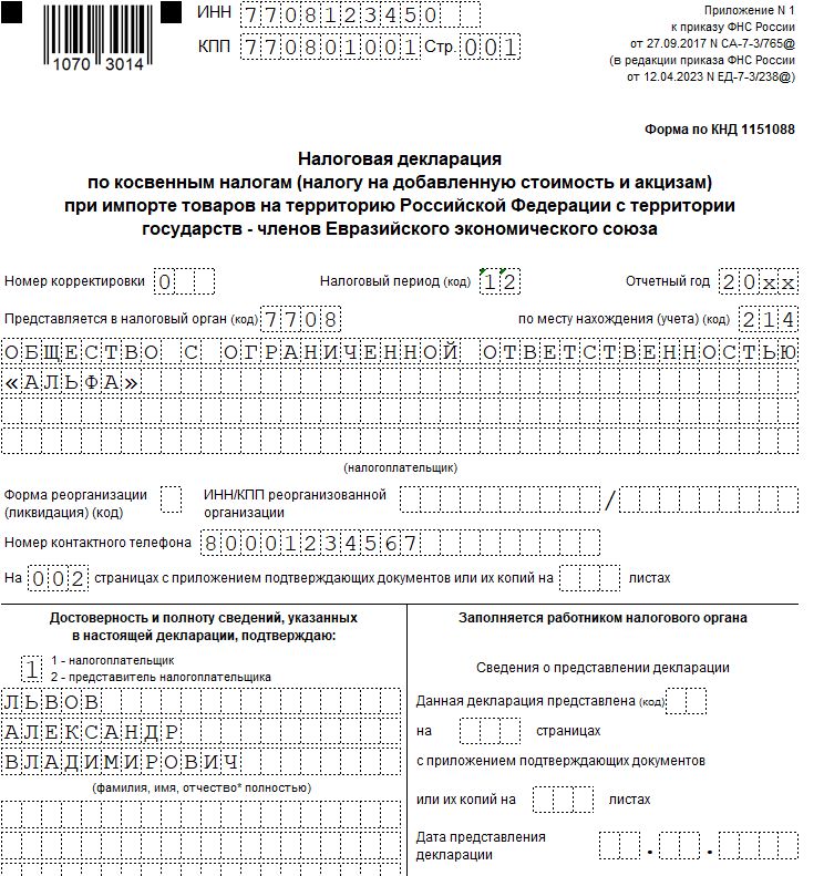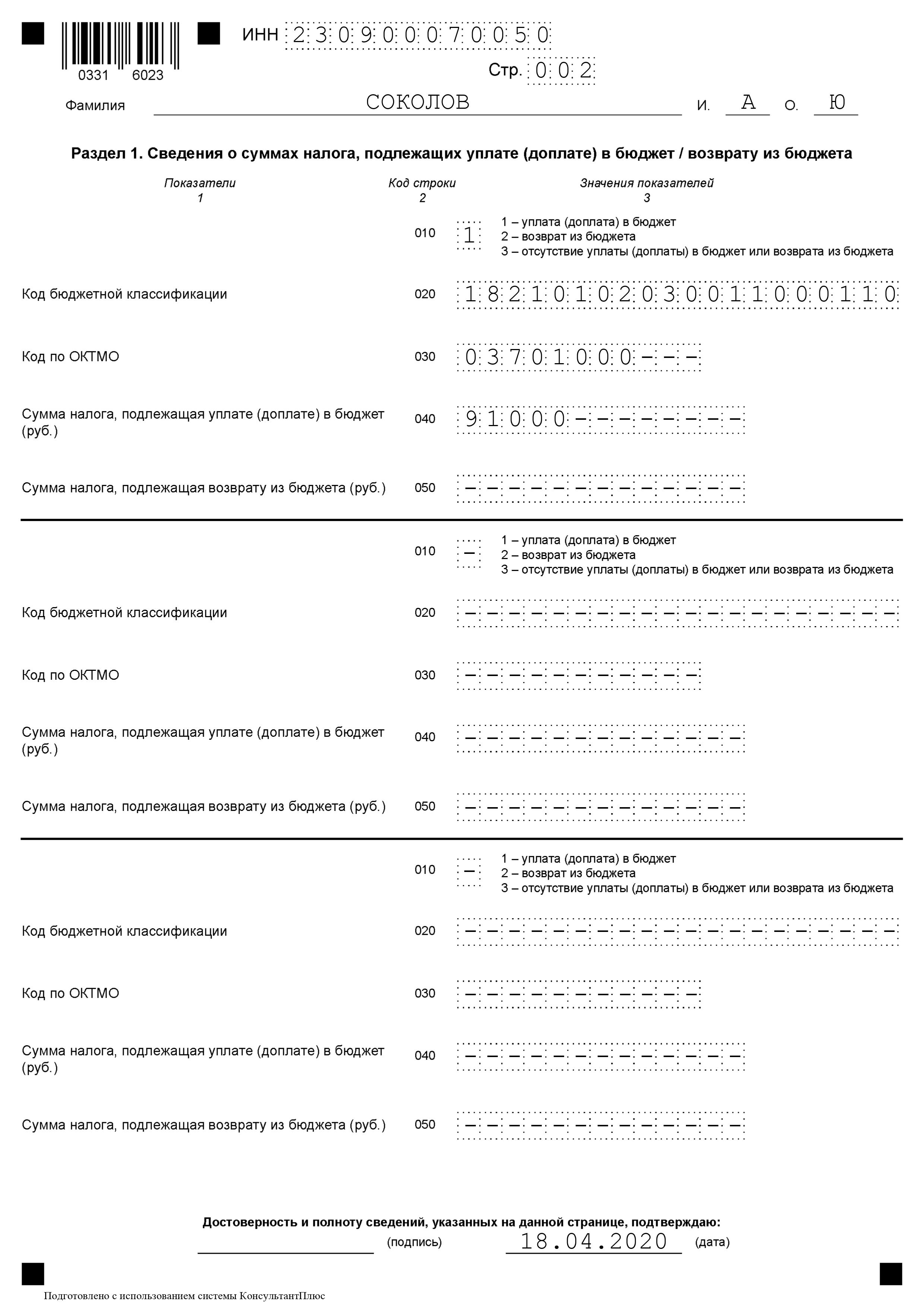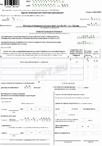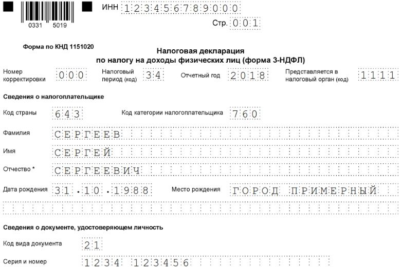Образец заполнения декларации 2019