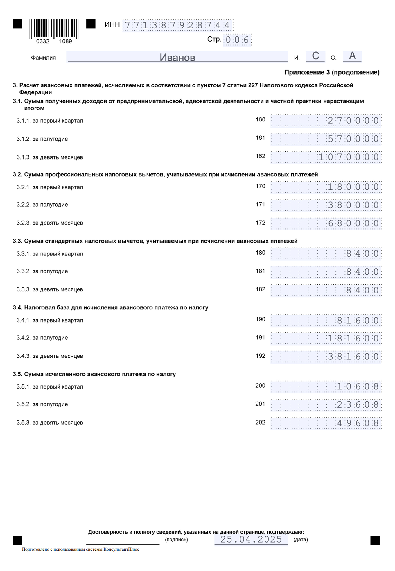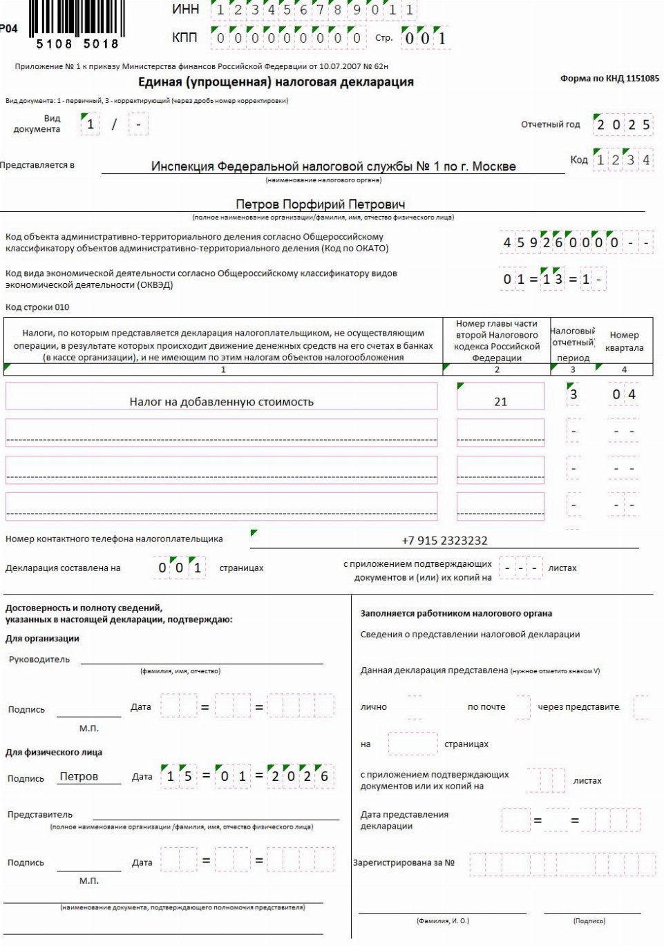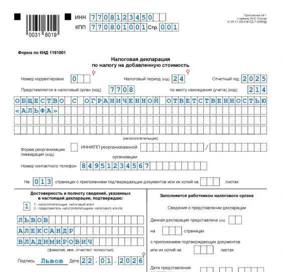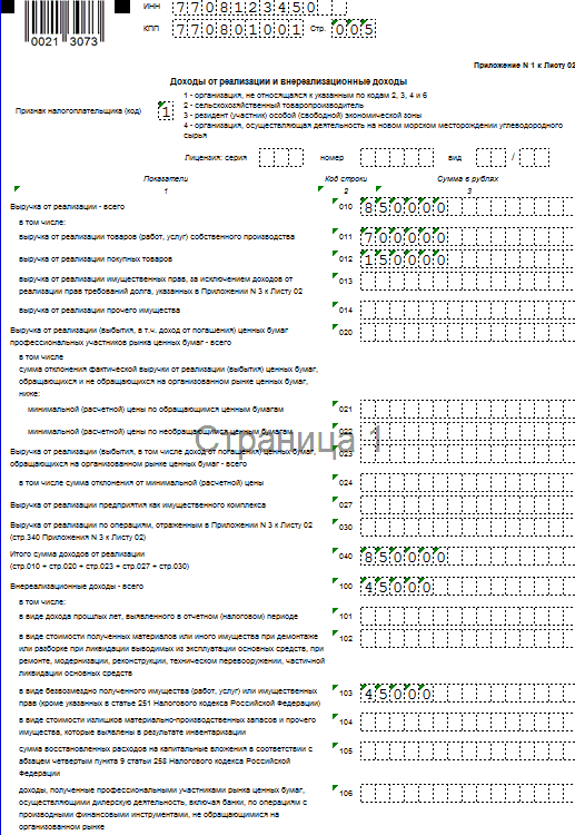 Образец заполнения декларации 2019