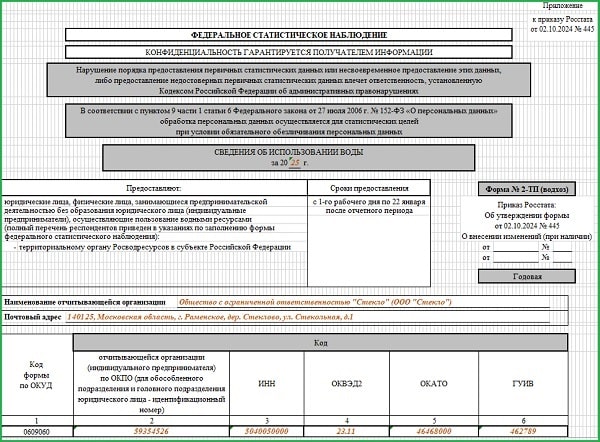 Образец заполнения формы 0609703