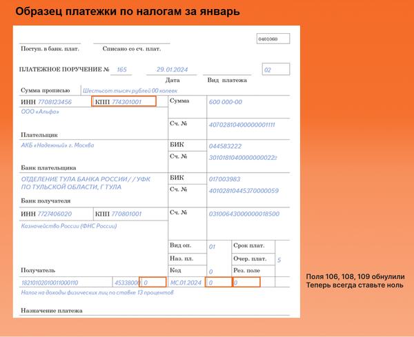 Образец заполнения платежки енс