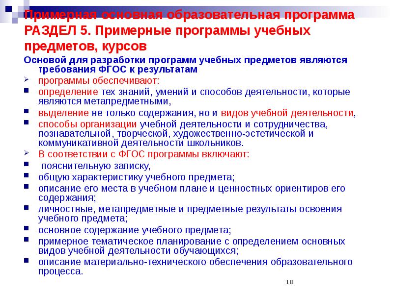 Образовательные программы 5 класс фгос