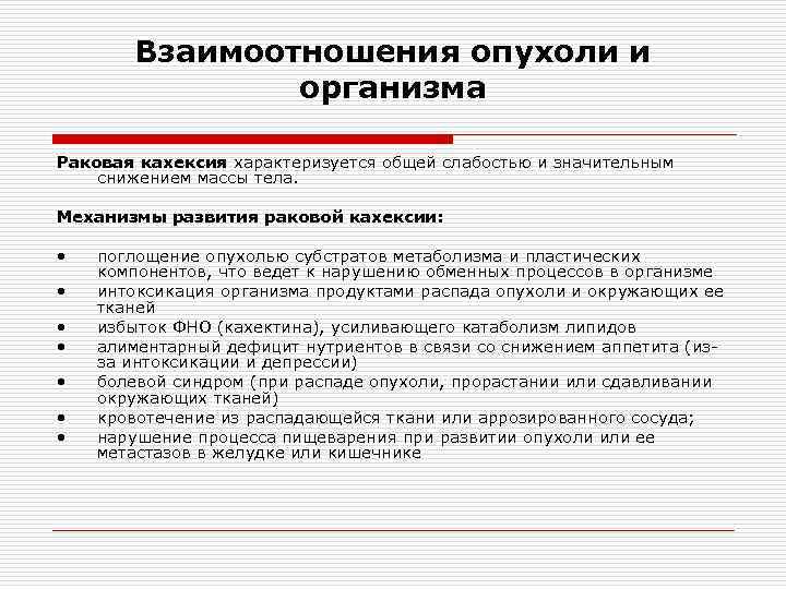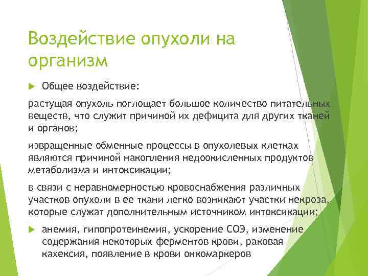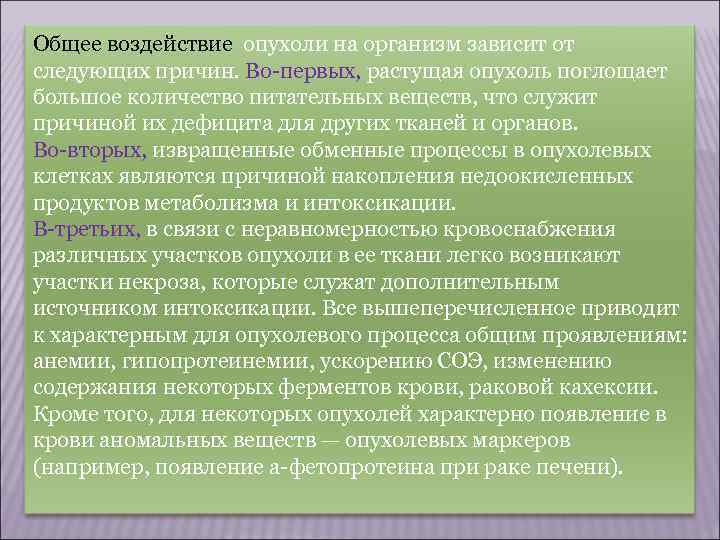 Общее влияние опухоли