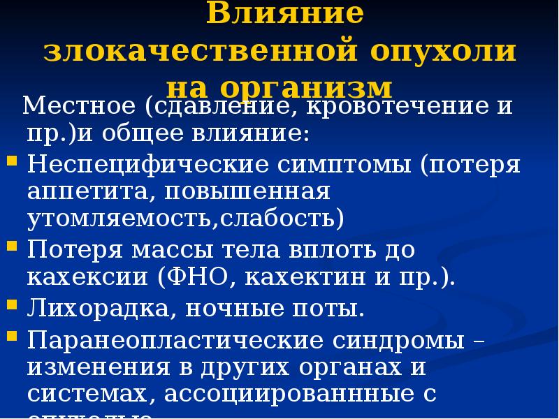 Общее воздействие опухоли