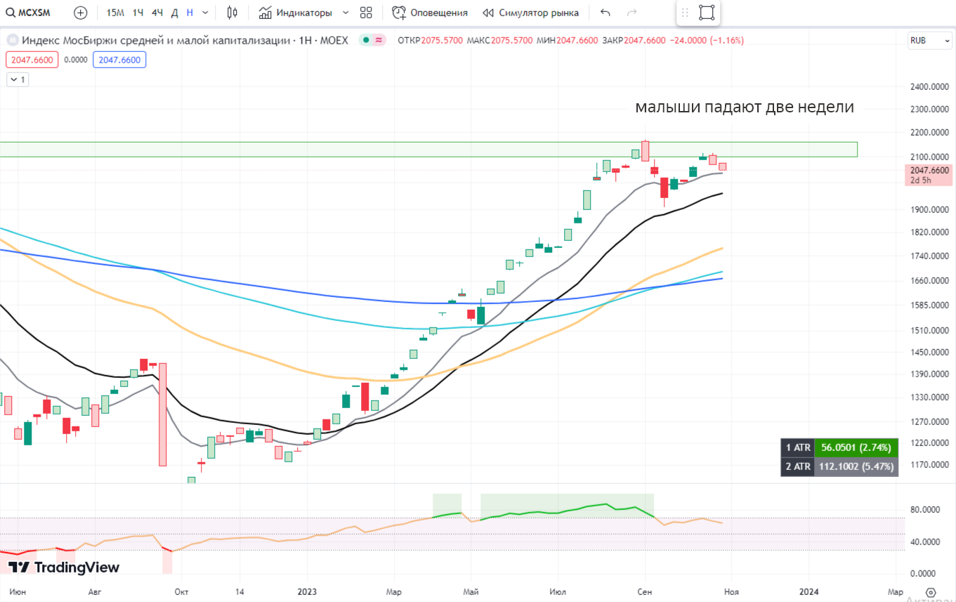Что с малышами?Индекс MCXSM открыто говорит нам, что игроки избавляются от рисковых компаний, перекладываясь в крупные компании.
