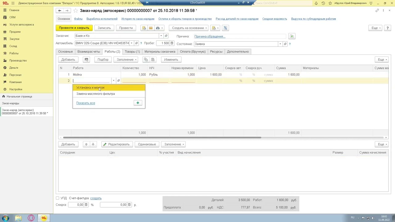 Обучение 1с автосервис