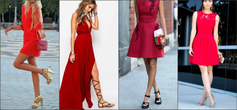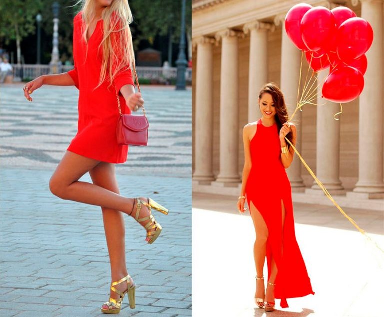 С чем носить красное платье: аксессуары и обувь
