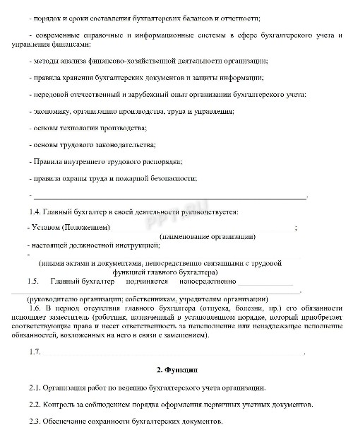 Обязанности бухгалтера пример
