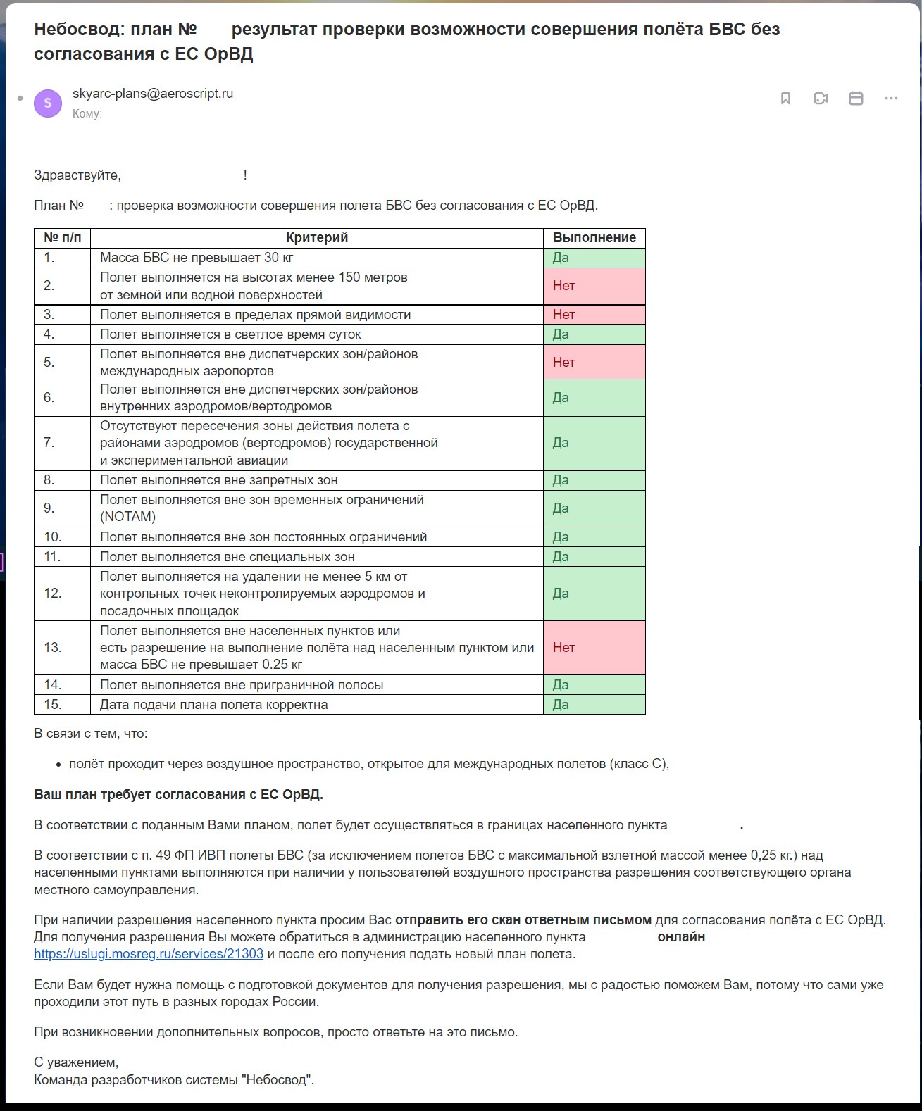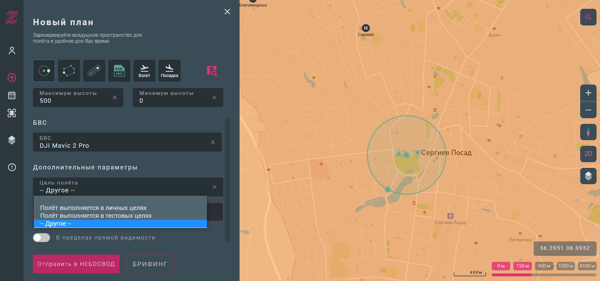 - Для новичков платформа тоже подойдёт, чтобы проверить ограничения и понять последующие шаги. Но нужно учесть, что проверка проходит не мгновенно и для прохождения полного цикла процедур придётся обратиться к другим ресурсам и начинать оформление полёта с запасом по времени. Под другими ресурсами подразумевается обращение в органы местного самоуправления при обращении за разрешением на полёт над населёнными пунктами, обращение в ФСБ при полёте в приграничной полосе, взаимодействие с лицами, в чьих интересах установлены запретные зоны и (или) зоны ограничений.