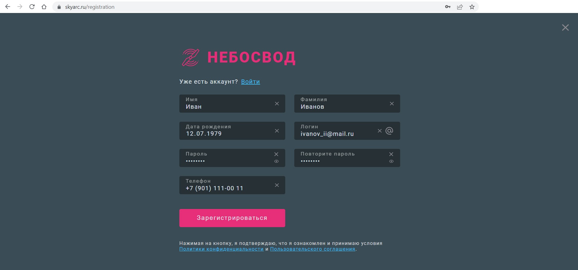 Платформа предлагает регистрацию для использования всего функционала.