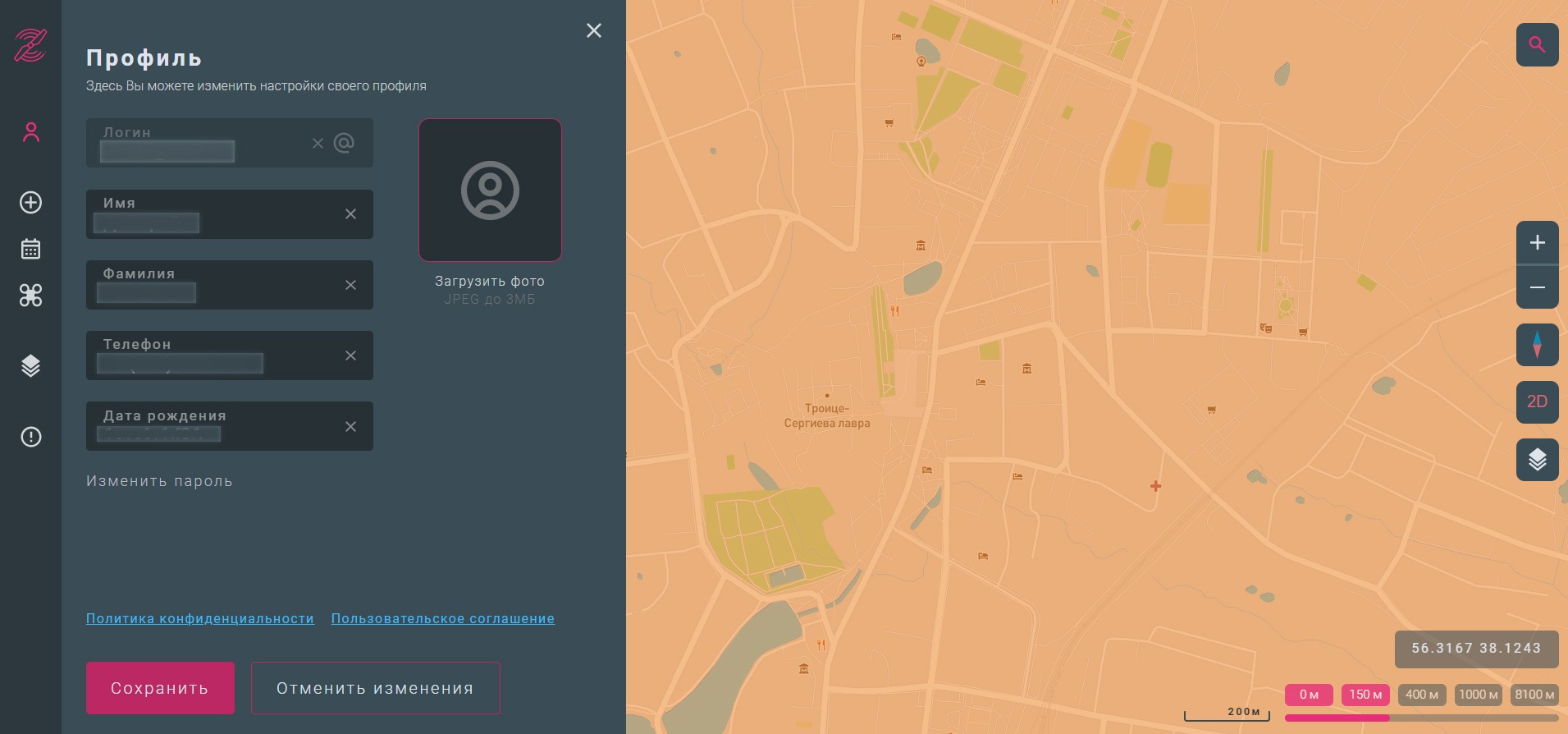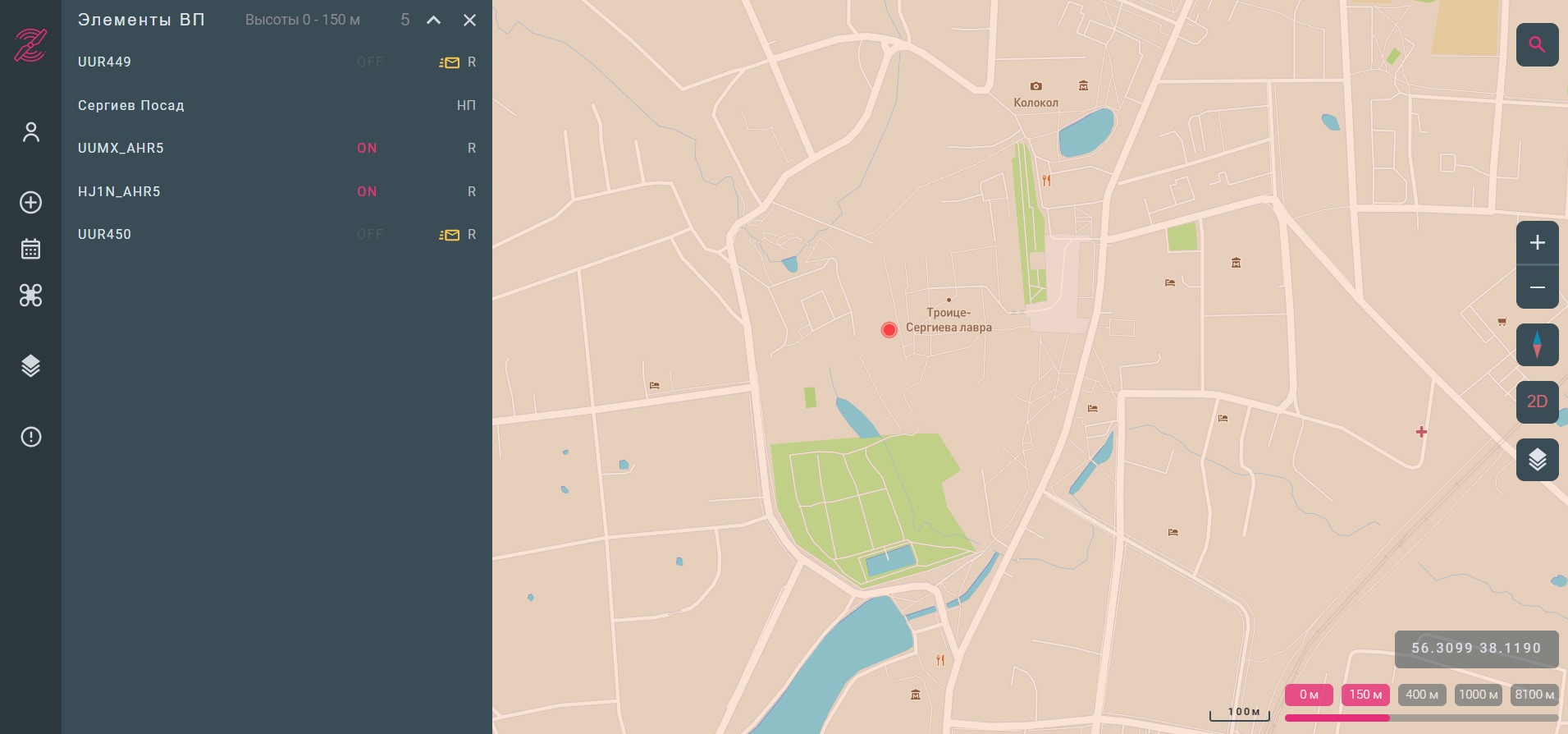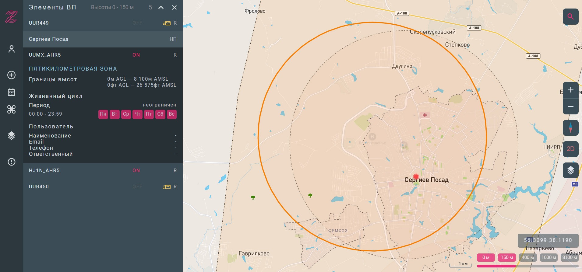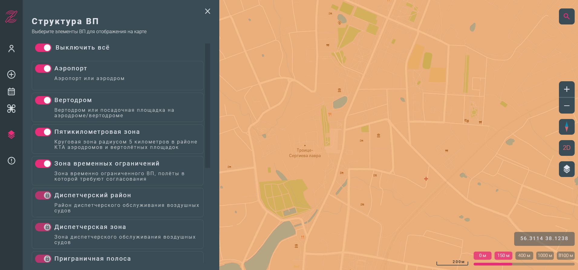 Здесь мы видим структуру зон ограничений на примере локации в Сергиевом Посаде
