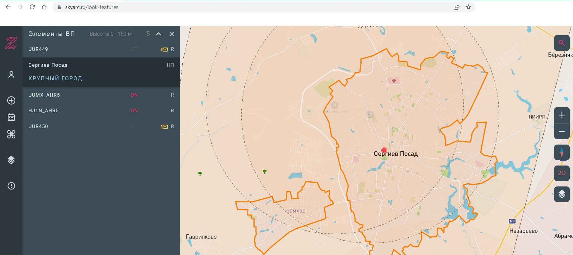 Результат рассмотрения приведён не для г. Сергиев Посад, а для другого населённого пункта, так как от данной локации с учётом сжатых сроков и количества зон ограничений пришлось отказаться в этот раз.