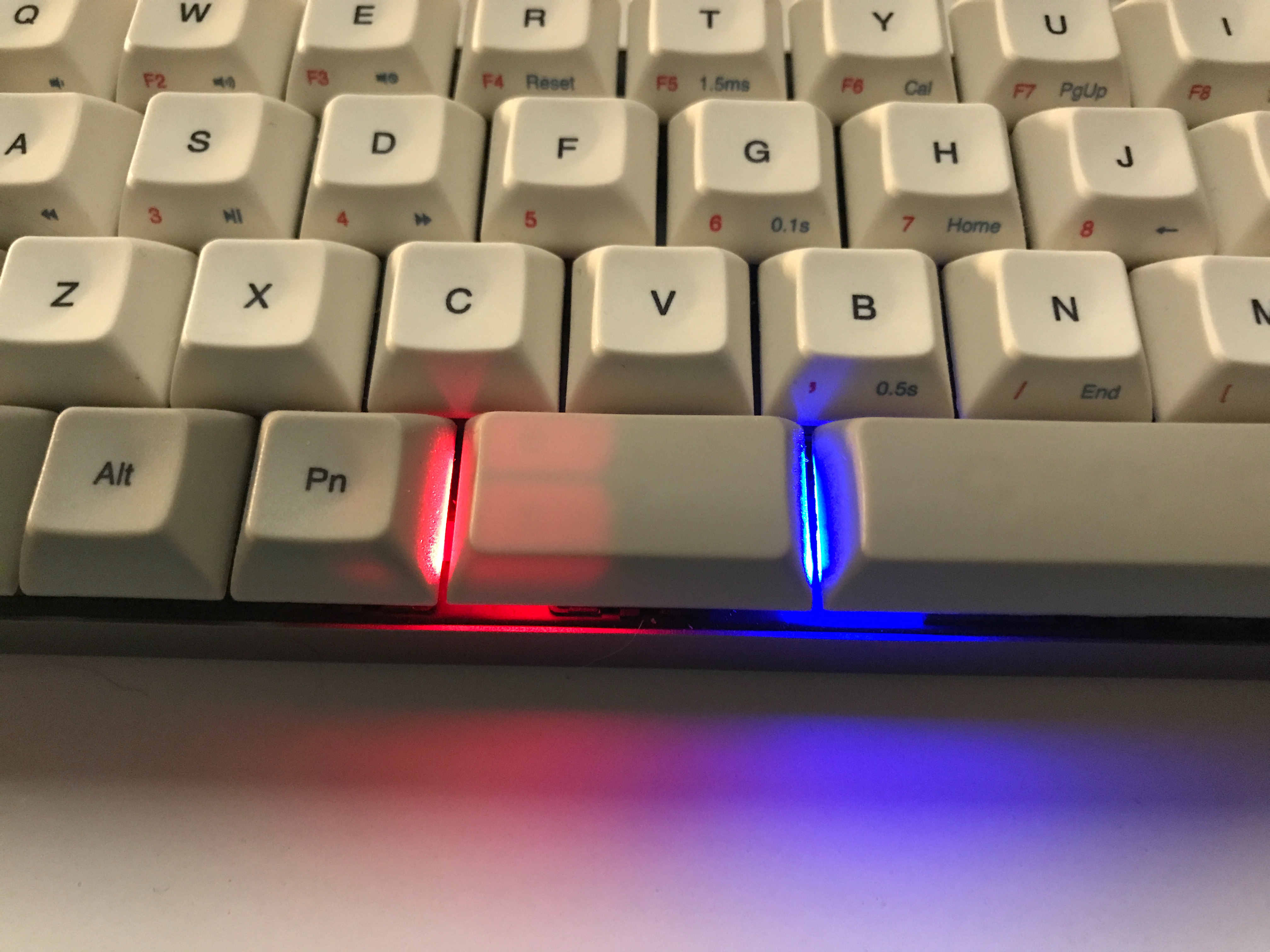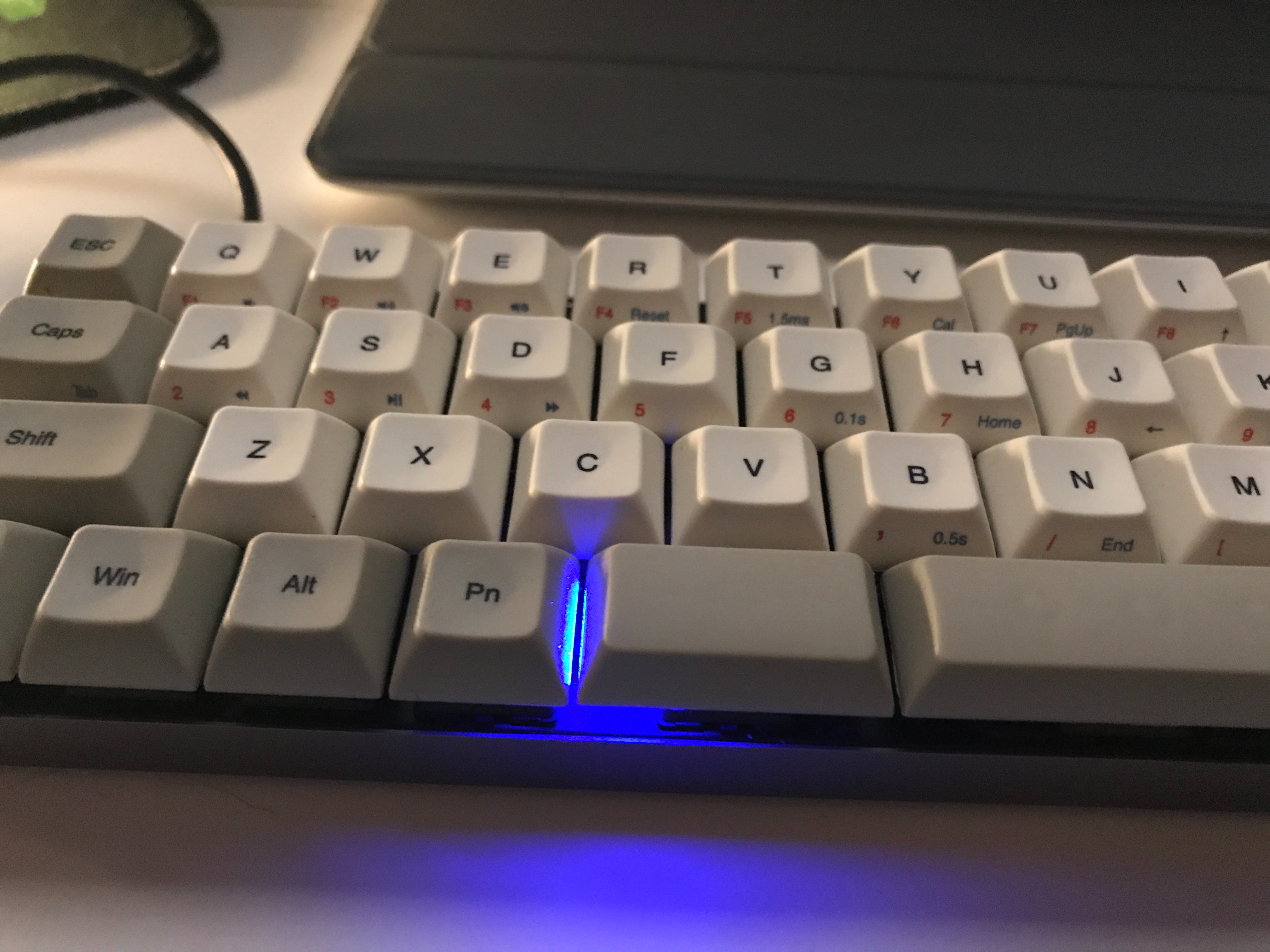 - Нажимаете Fn + RCtrl, после чего загорится синими цветом второй пробел.