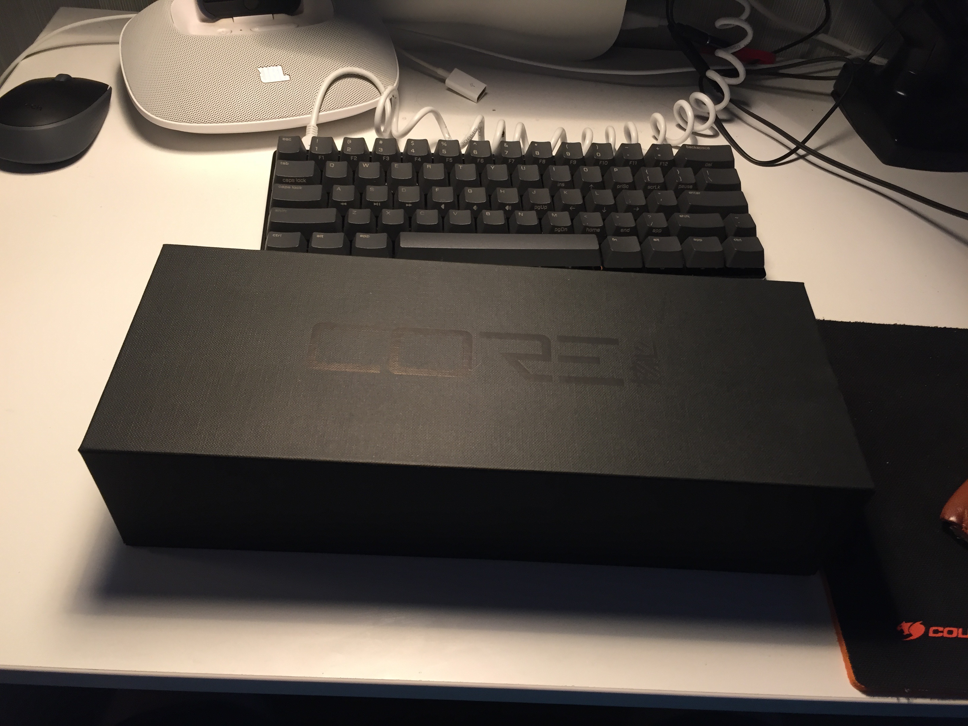 Клавиатура поставляется в очень интересной чёрной коробке с магнитной крышкой. На лицевой стороне красноречиво написано слово "Core" и немного иероглифов (что неудивительно, компания же Тайваньская).