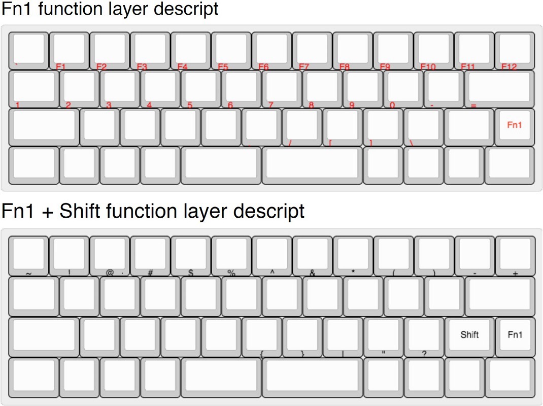 Работа с ними происходит через Fn и Fn1 клавиши. Ниже приведена раскладка с официальной документации, где задействуется Fn-клавиши.
