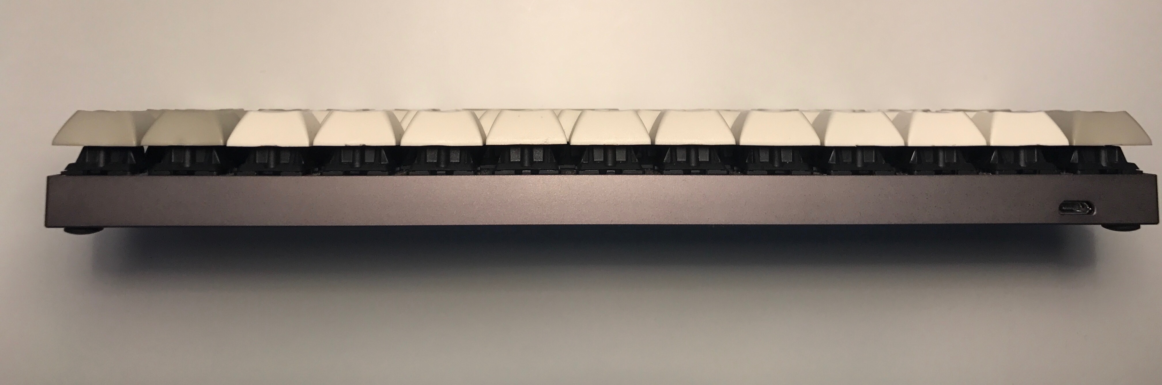 Клавиши имеют DSA профиль, в которые просто идеально ложатся кончики пальцев, что позволяет не ошибаться при наборе при слепой печати.
