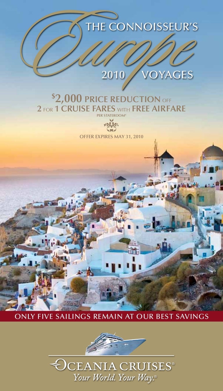The Oceania Cruises Experience . Each of our voyages is an invitation to discover your next travel story and reignite your passions . Experience faraway places that you have always dreamed of . Encounter new ways of looking at the world and travel to the far corners of the globe . Savor your experience with imaginative insider tours that immerse . . .