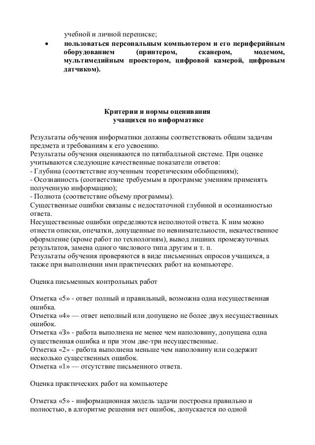 Оценивание Контрольных Работ По Информатике