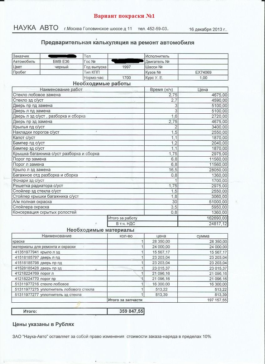 Оценка затрат ремонт