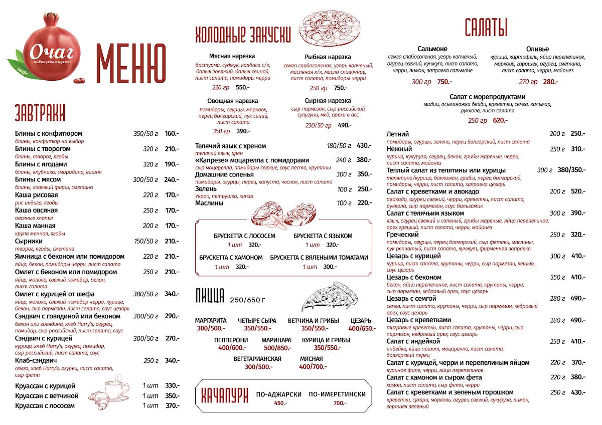 Очаг толмачево меню