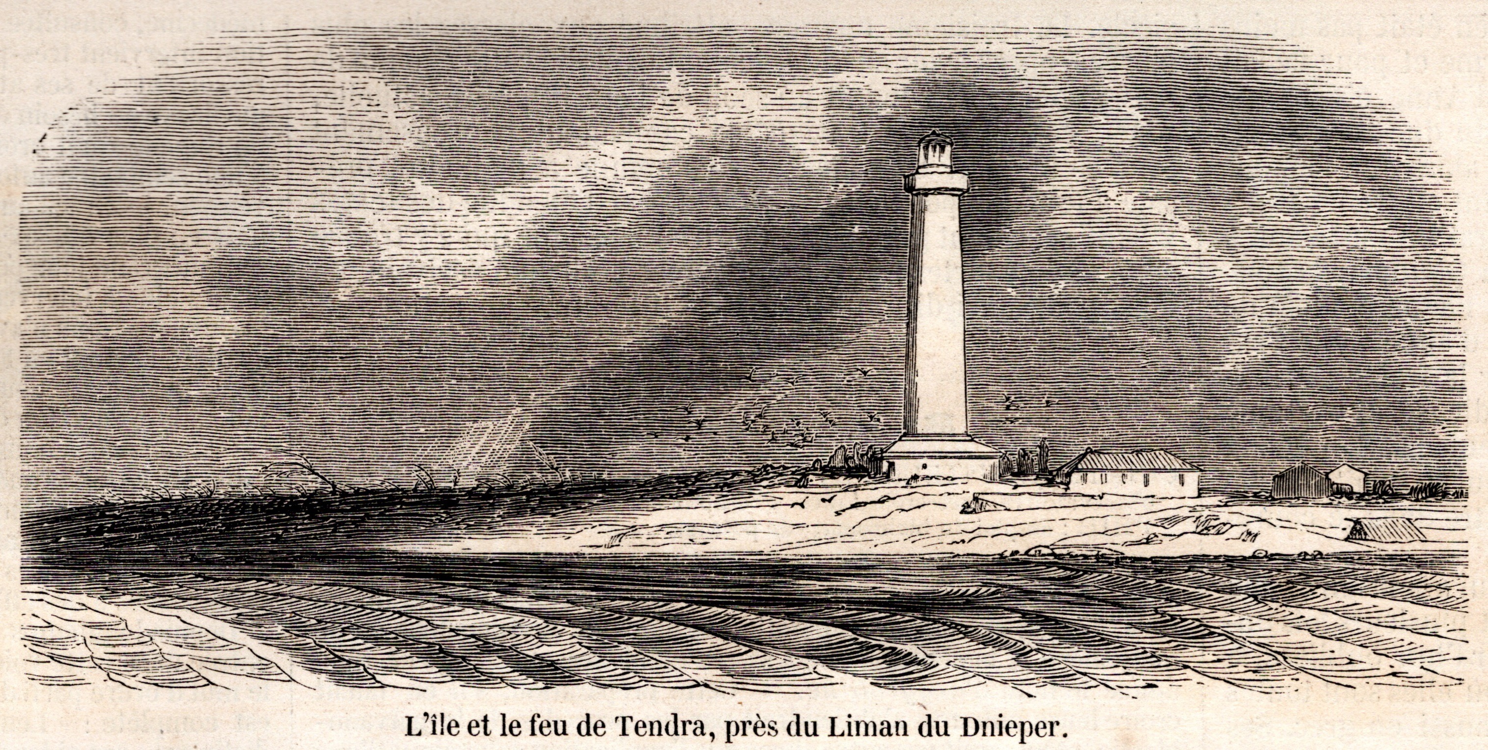 Кинбурнская коса, прославленная в царствование Екатерины II, блистательным отражением Турецкого десанта, замечательна ныне в промышленном отношении по имеющимся там рыбным заводам.