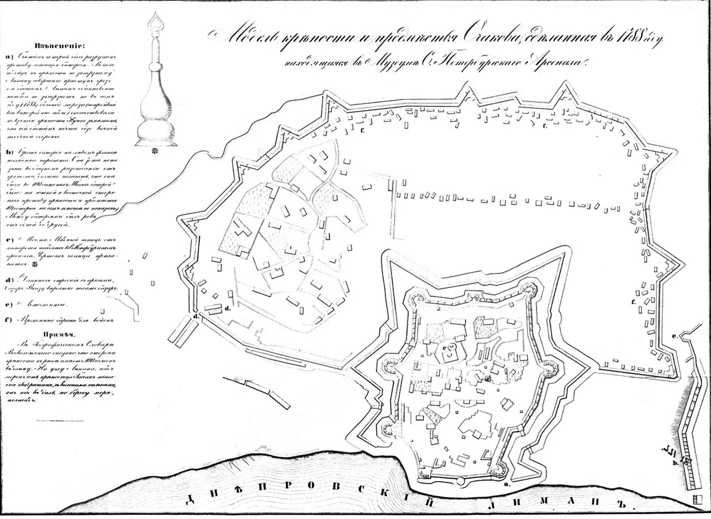 2. Для полноты прилагается план крепости, скопированный с современной взятию Очакова модели, хранящейся в С.-Петербургском историческом арсенале. См. Табл. IX. - Н. М.