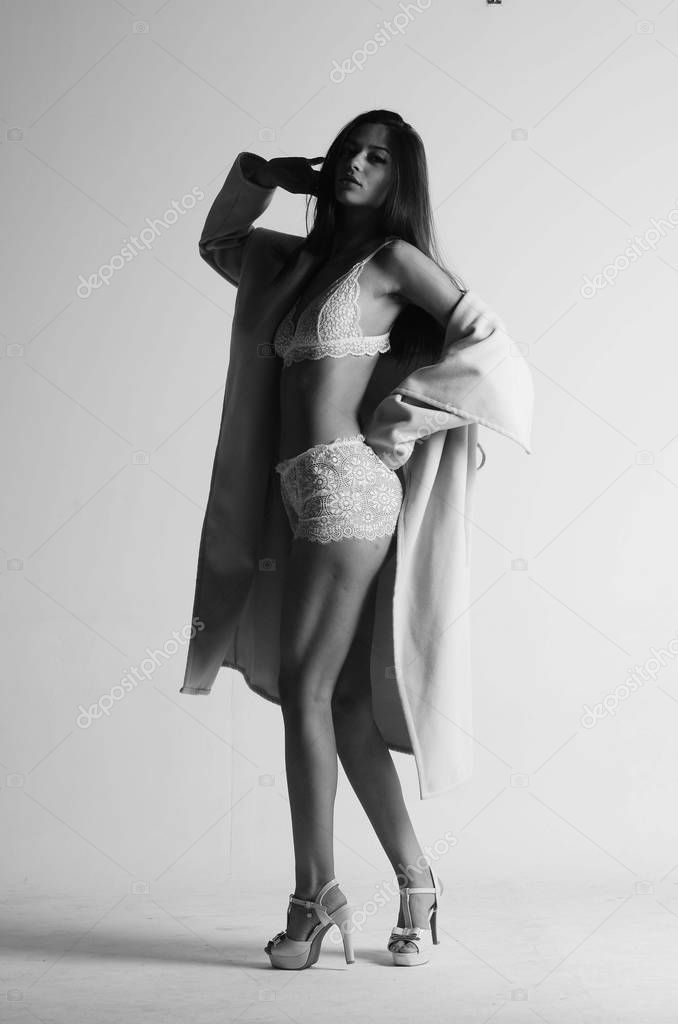 Сексуальная брюнетка в красивом белом нижнем белье (720 hd)
