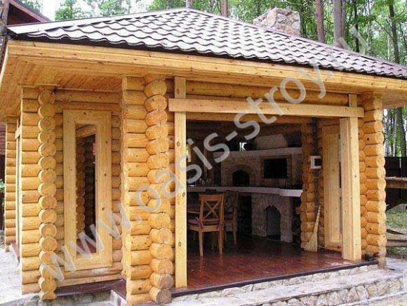 Беседка из оцилиндрованного бревна: виды конструкций, идеи . . .