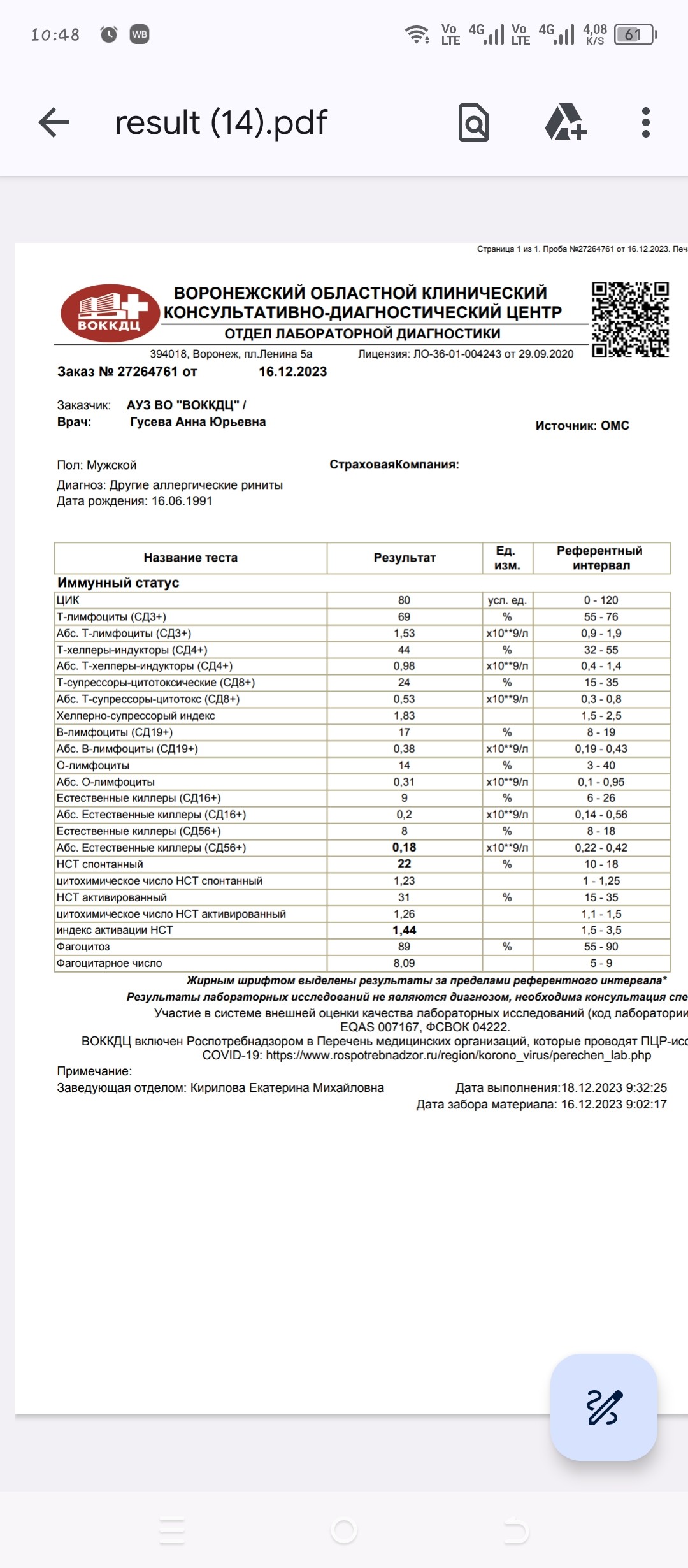 Один раз сдавал анализ на