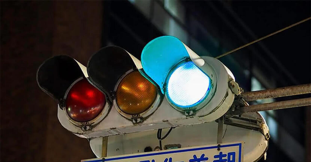 Один синий огонь светофора