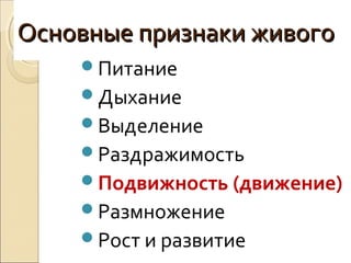 Одним из главных признаков живого является