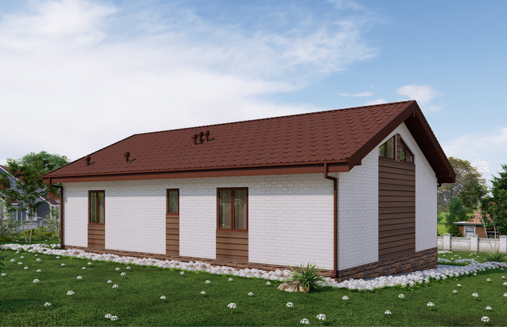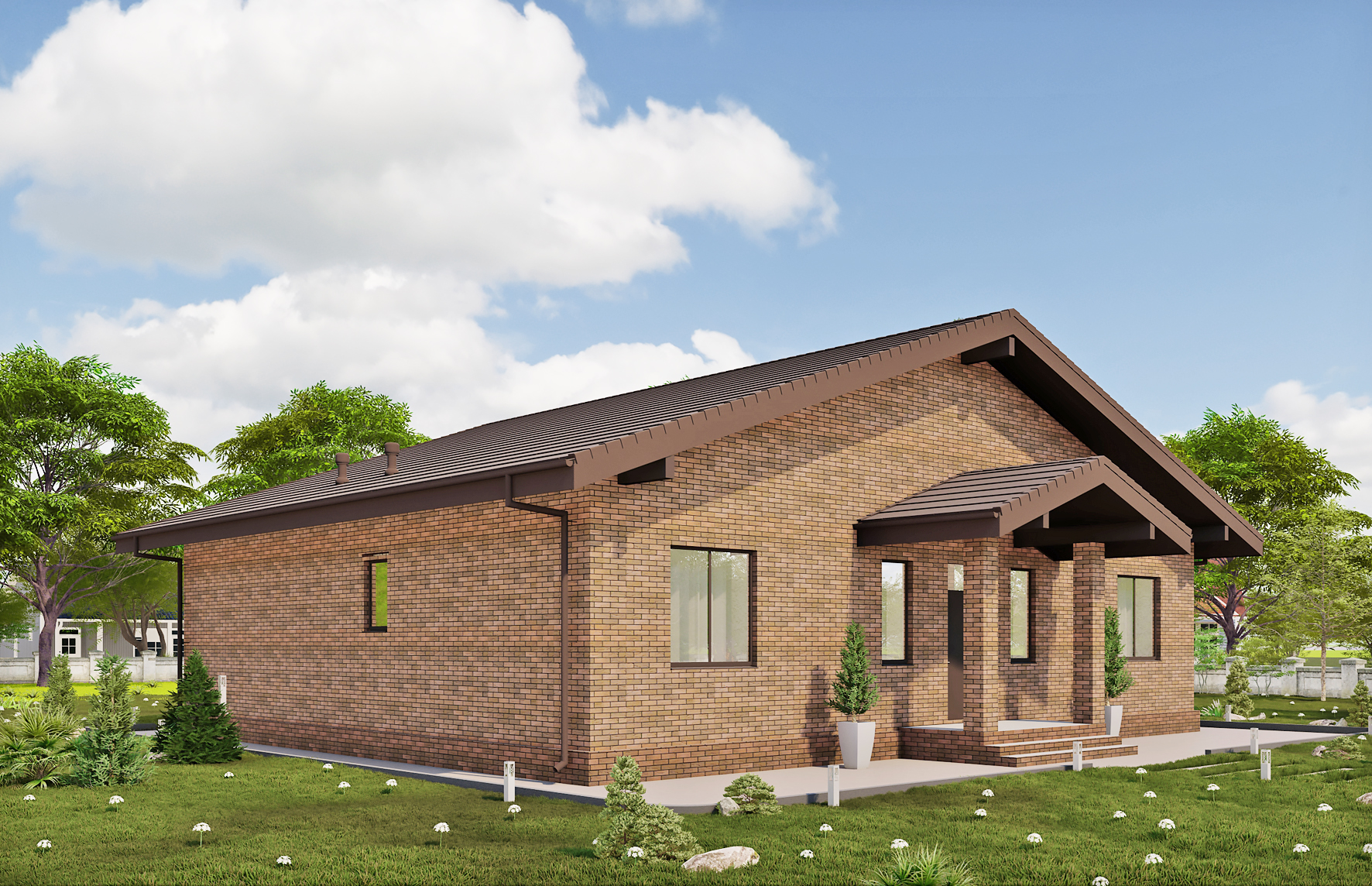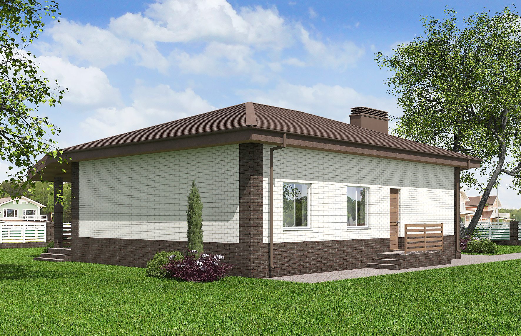 Одноэтажный дом 8 10 с террасой 115 фото