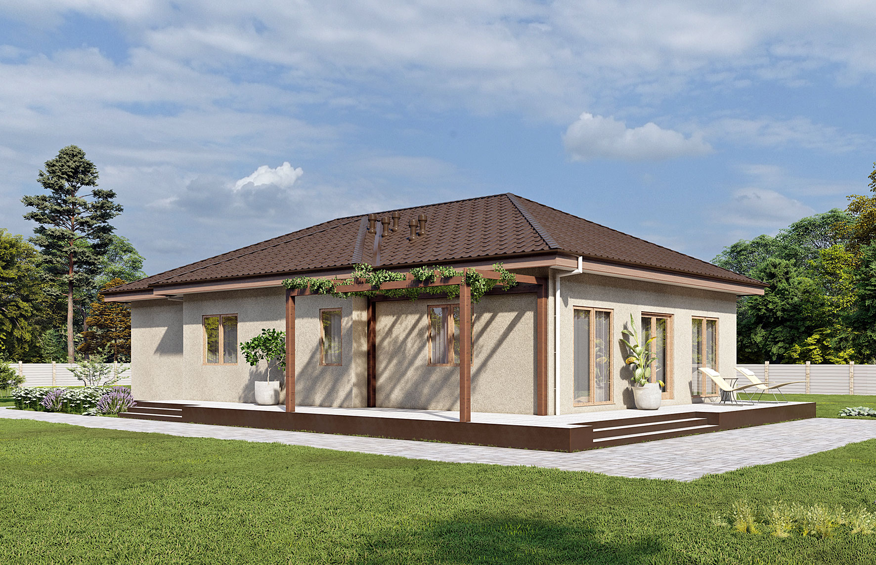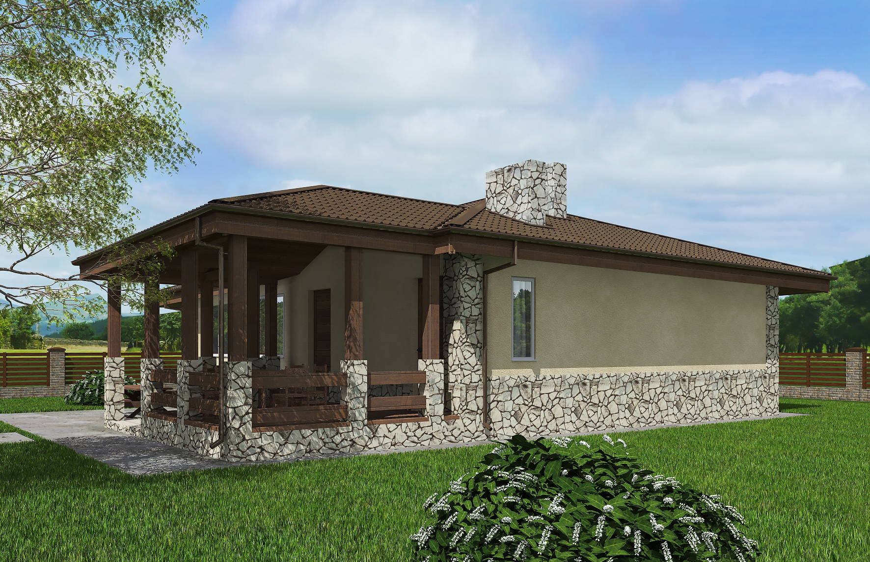 Одноэтажный дом 8 10 с террасой
