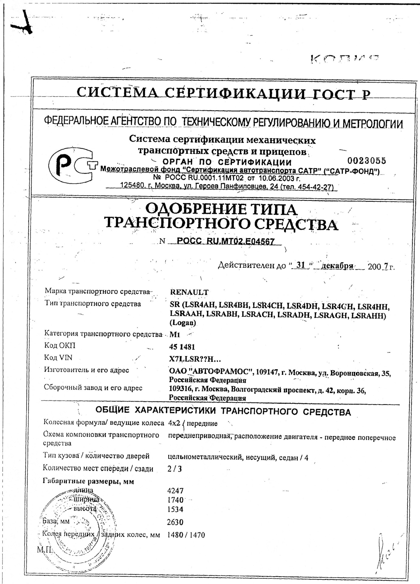Одобрение типа тс росс 89 фото