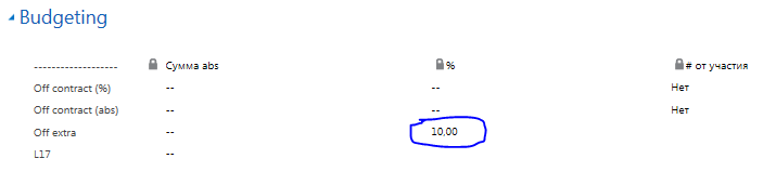SergeyБюджет Off extra (он же Off flexi) не прописывается в Торговых Условиях. Он может существовать в системе только внутри промо-акций.