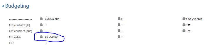 Так же, как и OffContract по статье "Channel Activation" (для KR - "BMC") выплаты Off extra записываются на всю акцию целиком в секцию Budgeting. Система автоматически распределяет сумму, которую указал КАМ (см. аналогию с контрактными инвестициями), или сумму, которую рассчитала сама система в соответствии с глубиной скидки off-invoice (см. аналогию с контрактными инвестициями), по всем участвующим в промо SKU по пропорции GES.