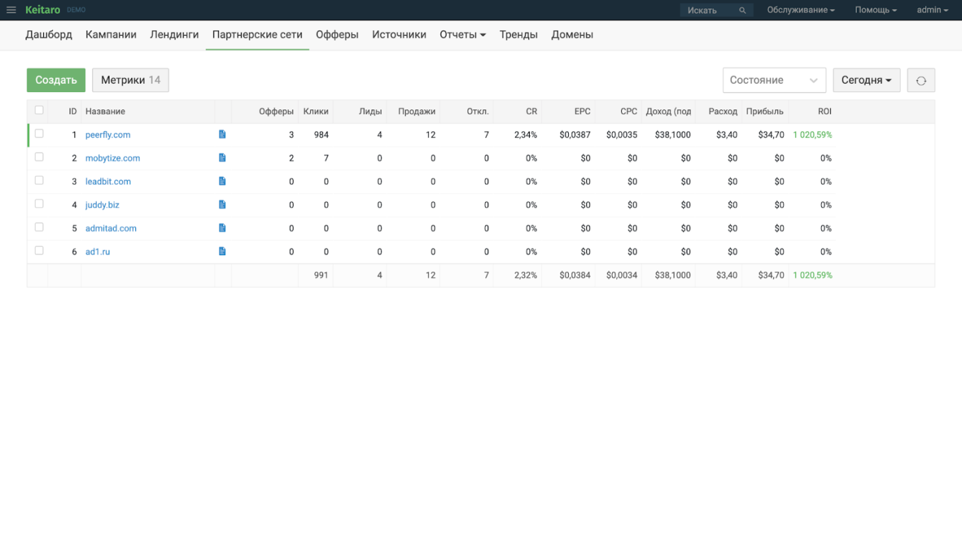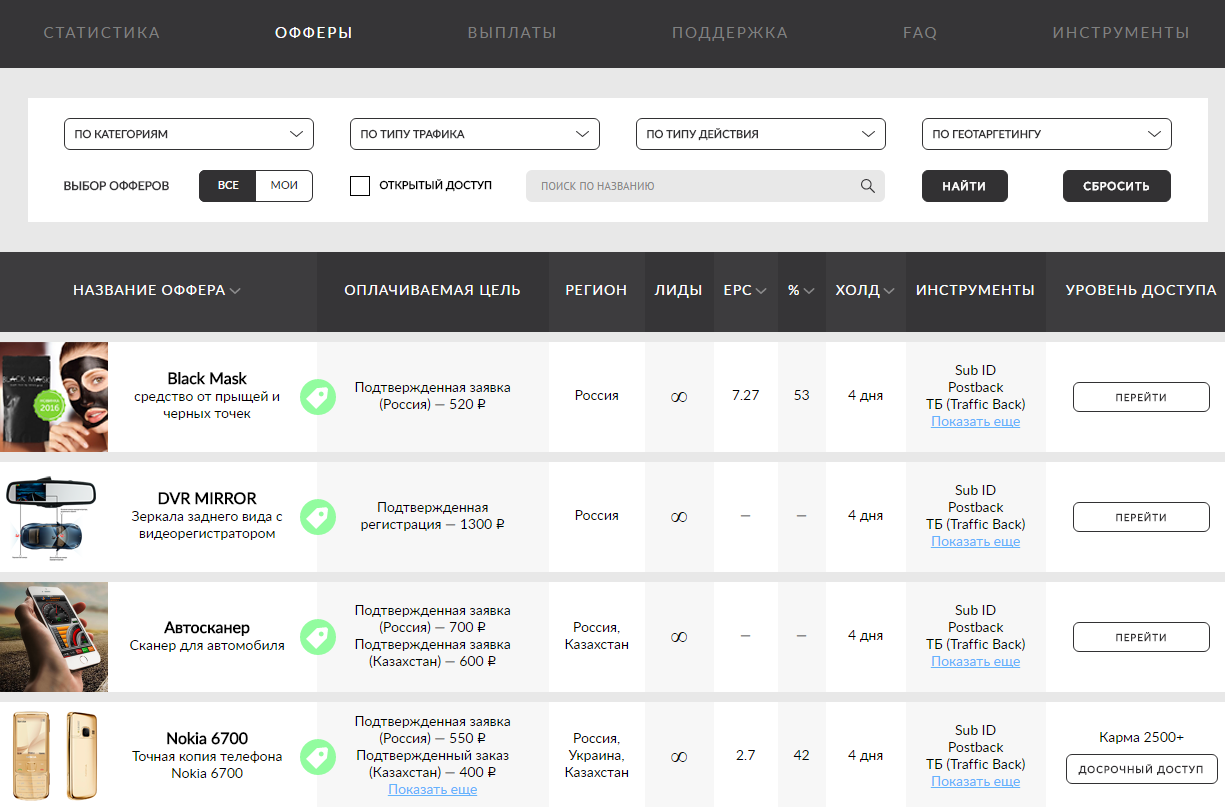 Офферы партнерских сетей