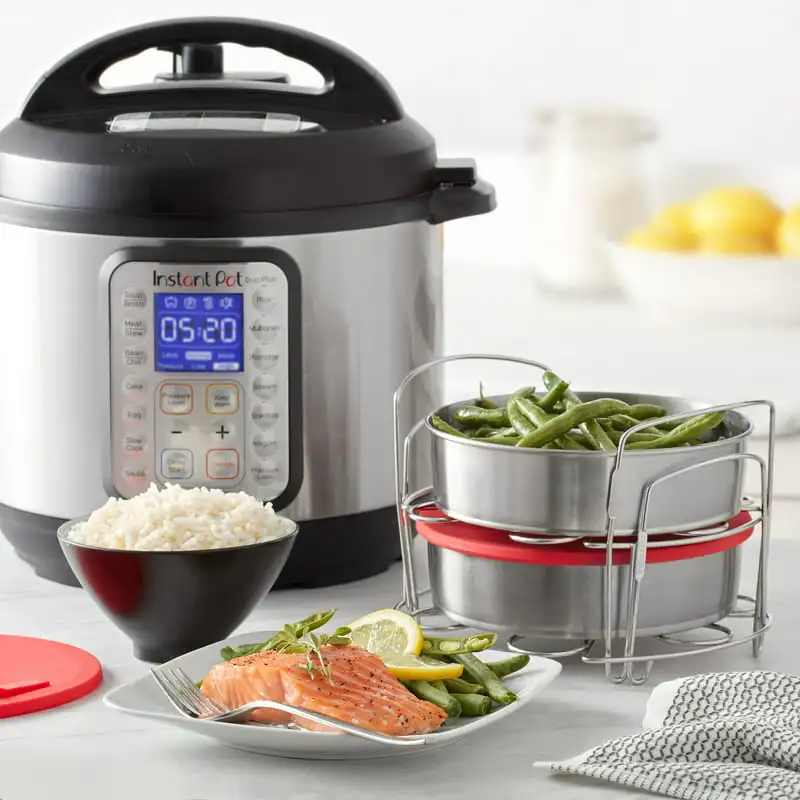 "Official 8-piece Cook/Bake Set 2 Pans, 2 Wire Racks, 2 Red Silicone Lids, 1 Removable Divider, and Removable Base" * Buy Now With Free Shipping Just For $28