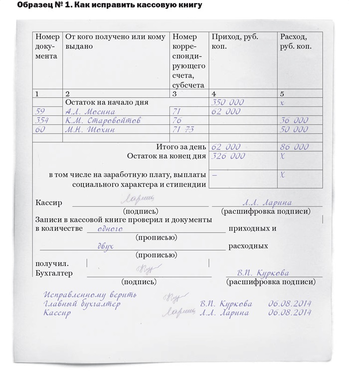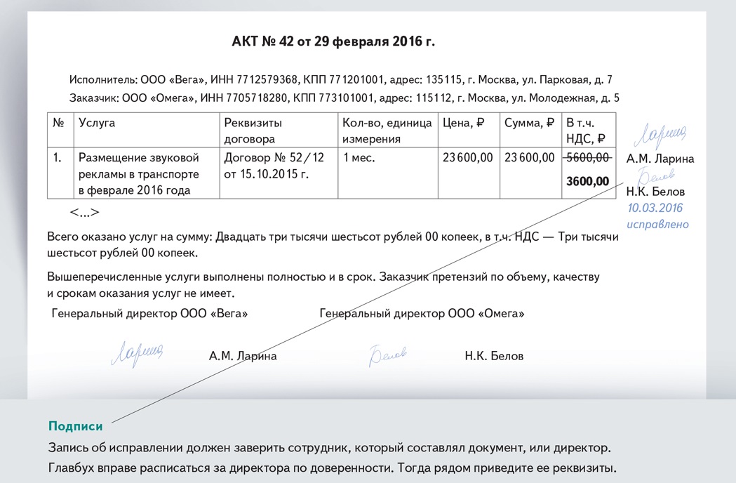 Оформление исправлений в документах