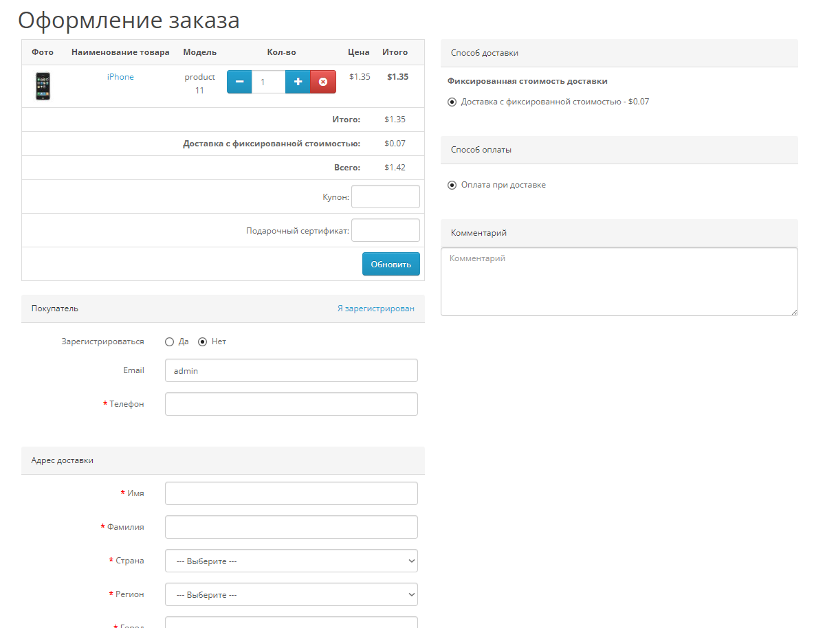 Оформление заказа order