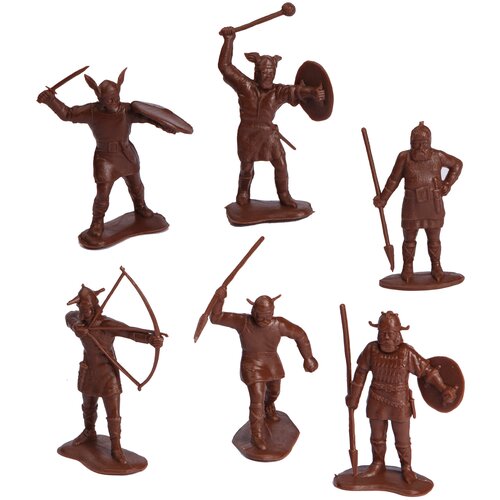 Vikingler. Oyuncak askerler Ayaktan tepeye 60 mm boyut, silahlarla birlikte yükseklik 100 mm'ye kadar Savaş oyunları için 6 minyatürden oluşan set