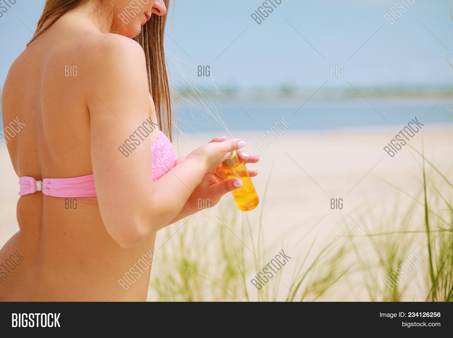 Oiled sweetheart on the beach