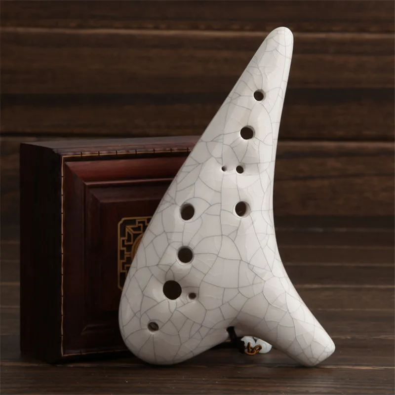 окарина - это древнийдуховоймузыкальный инструмент - разновидность сосудистой флейты . Существуют вариации, но типичная окарина представляет собой замкнутое пространство с четырьмя-двенадцатью отверстиями для пальцев и мундштуком , который выступает из тела .