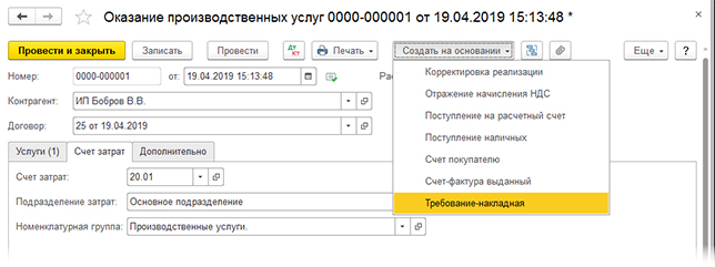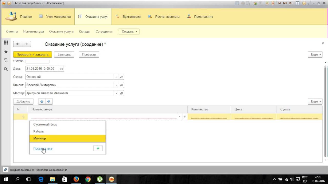 Оказание услуг в 1с 8