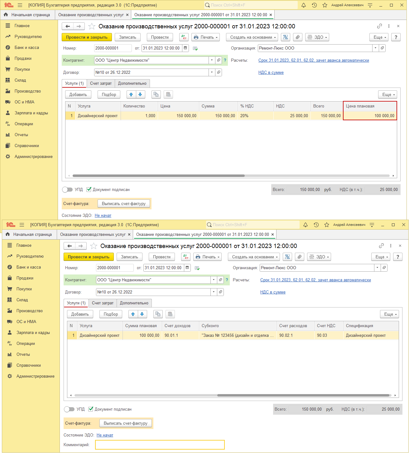 Оказание услуг в 1с 8 115 фото