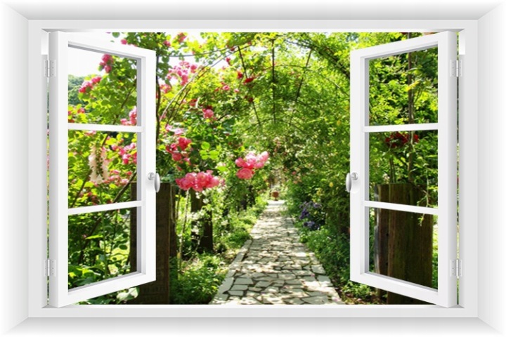 Окно в сад картинки . . . . 3d фотообои вид из окна в сад применяются в гостиной и спальне . Помещение компактных размеров требует гамму с множеством мелких деталей .