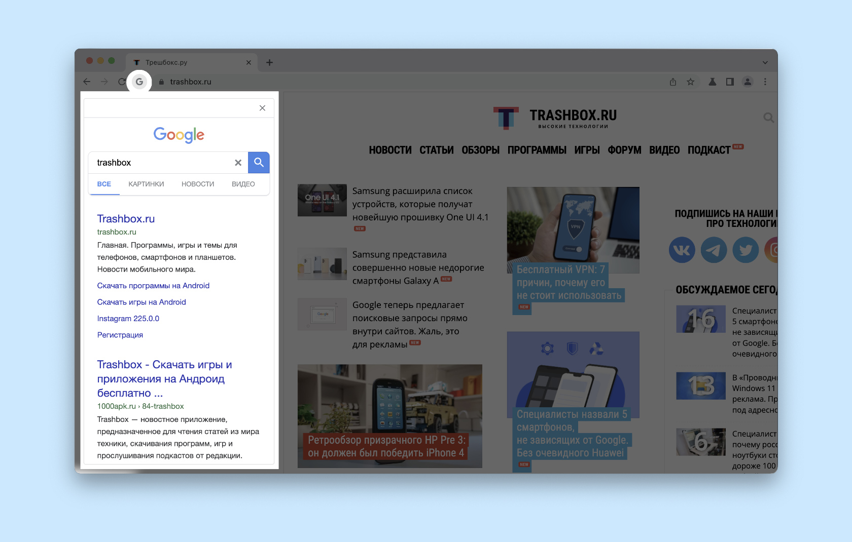 Окно в окне гугл