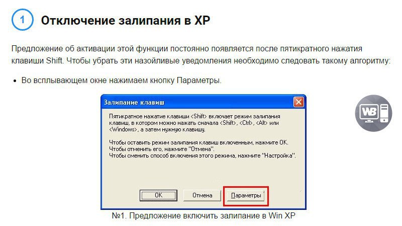 Окно залипание клавиш