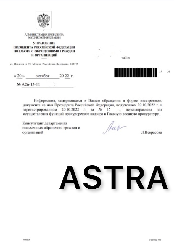 Жалобы писали и мы, и они везде. В Минобороны: нет ответа. Писали в главную военную прокуратуру: нет ответа. Писали в приемную президента. Ответ таков: обращение отправлено в главную военную прокуратуру.