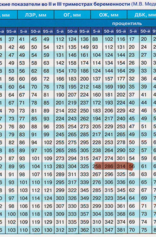 Окружность плода таблица 141 фото