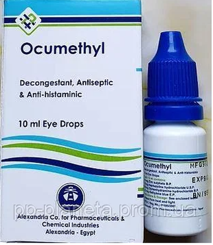 Окуметил . Окуметил - раствор глазных капель комбинированного состава, с антисептическим, противовоспалительным, противоаллергическим и сосудосуживающим свойствами . В офтальмологии применяется для лечения аллергических конъюнктивитов и блефароконъюнктивитов . . .